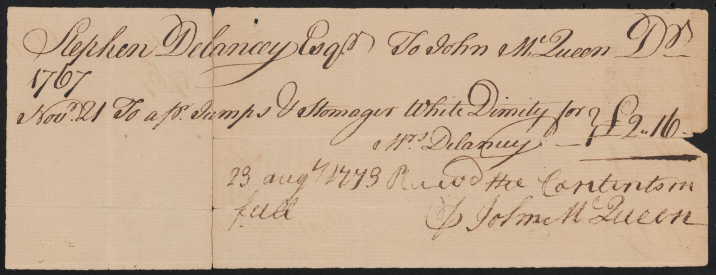Undated bill issued by Stephen De Lancey to the estate of his mother, Anne Heathcote De Lancey