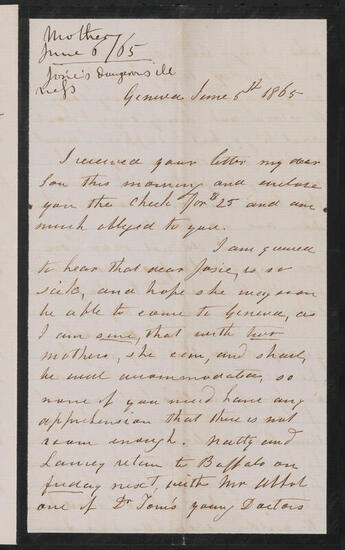 Letter from Frances Munro De Lancey to Edward Floyd De Lancey, June 6, 1865