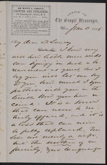 Letter from George C. Genet to Edward Floyd De Lancey, June 6, 1865