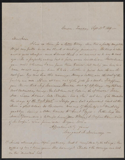 Letter from Margaret Munro De Lancey to Josephine De Lancey, January 29, 1849