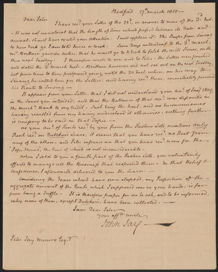 Letter from John Jay to Peter Jay Munro, March 3, 1810