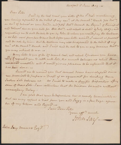 Letter from John Jay to Peter Jay Munro, February 5, 1806