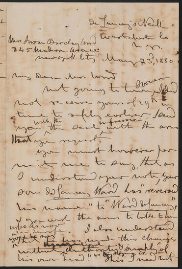 Letter from Edward Floyd De Lancey to Cousin William, March 22, 1879