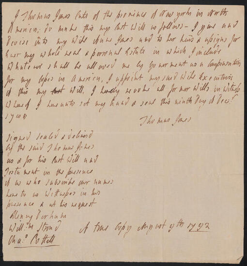 Letter from Thomas Jones to John Peter De Lancey, July 4, 1792