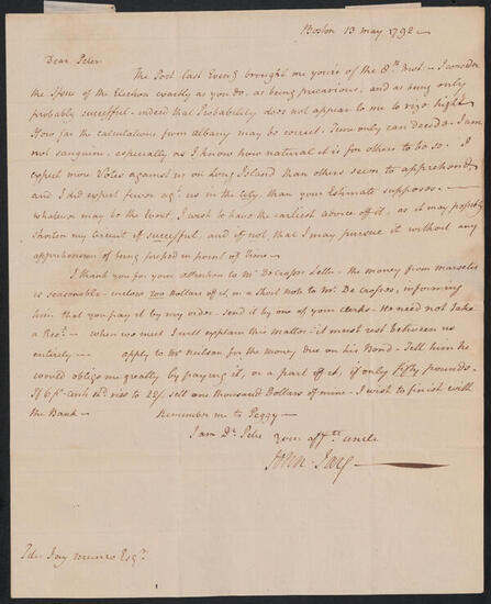 Letter from John Jay to Peter Jay Munro, May 19, 1791