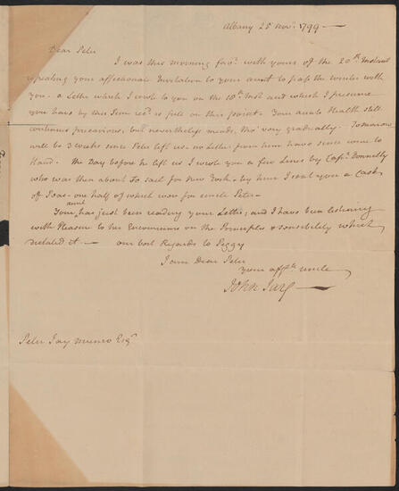 Letter from John Jay to Peter Jay Munro, November 6, 1799