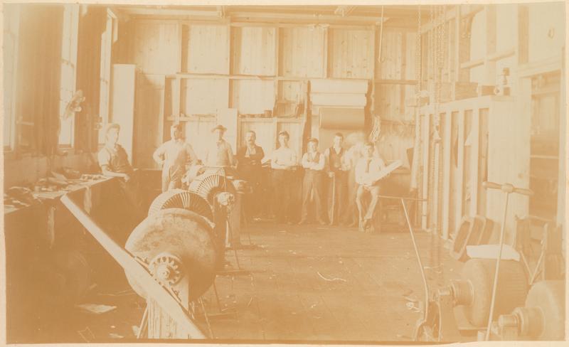[Workers in a Brooklyn Rapid Transit machinery shop.]