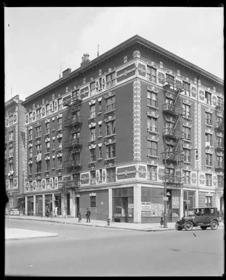 104th Street at the N.W. corner of West End Avenue. Apartment house.