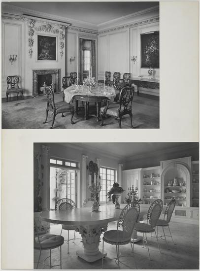 A.Dining room in home of Mrs. Edwin Gould, 936 Fifth Avenue, April 24, 1942 ; B. Dining room in the home of Gypsy Rose Lee
