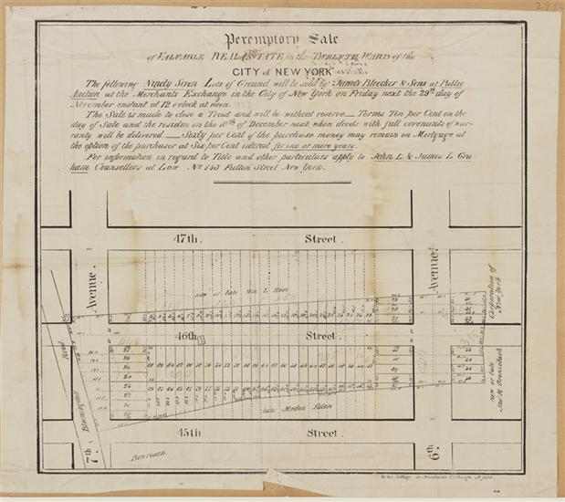 Map of Valuable Property in the 1st Ward of the City of New York Belonging to the Estate of the Late Joel Post Esq.