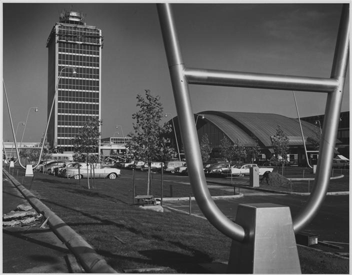 Pan American World Airways' plane on runway bridge over the automobile road at Idlewild, the New York International Airport