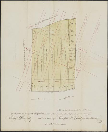 [Survey and map of several lots of building ground on the west side of Greenwich Street between Beaver and Rector Streets...belonging to the heirs of Isaac Stoutenburgh deceased]