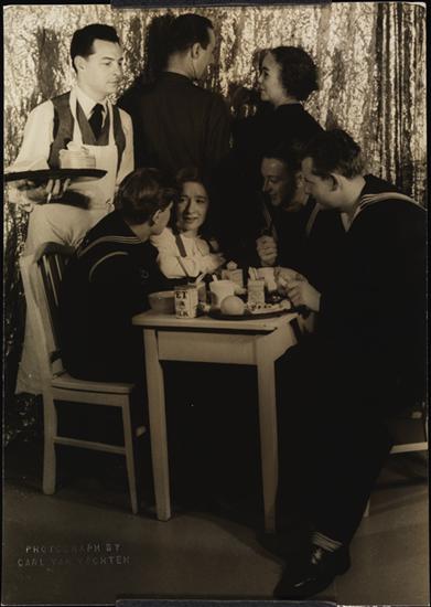 Private First Class Bob Moore, Irving Shergel, Busboy Tom Rutherford, Soldier Leroy Feurtods, Senior Hostess Dorothy Peterson (Stage Door Canteen).