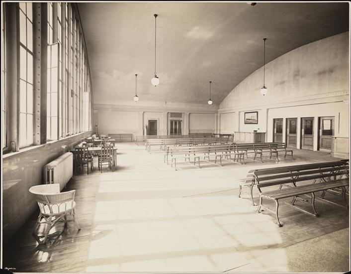 [French Line, Pier #88 N.R., Waiting Room, From South End.]