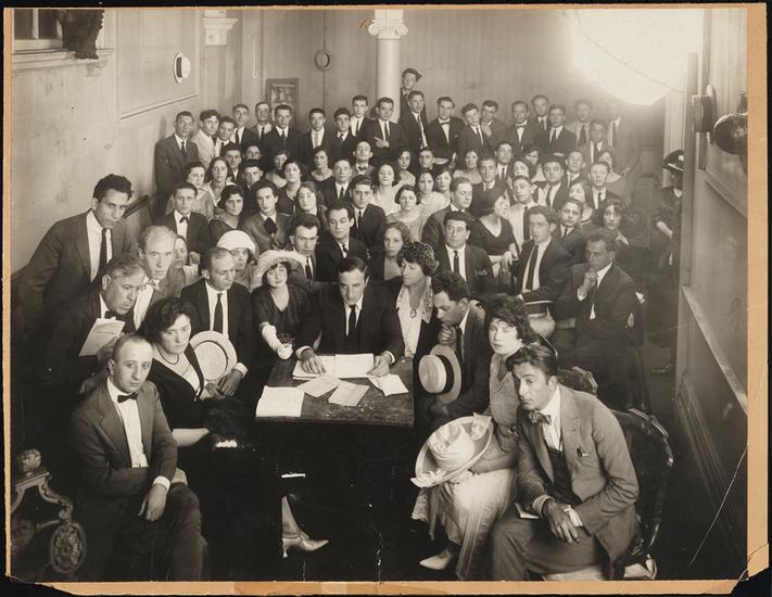 [Maurice Schwartz with the Yiddish Art Theatre troupe.]