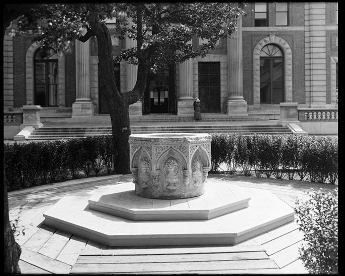 Columbia University. Stone well head in courtyard.