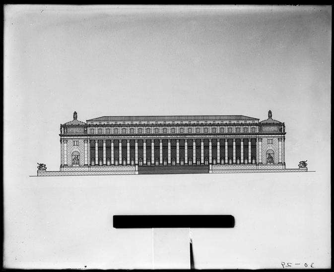 U.S. Post Office. Perspective of 8th Avenue facade with front steps.
