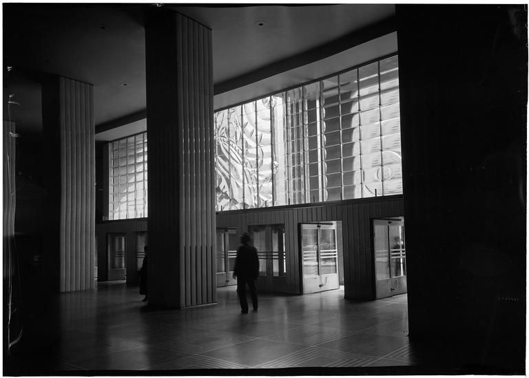 Rockefeller Center. RCA Building, Sixth Avenue entrance from inside pillars.