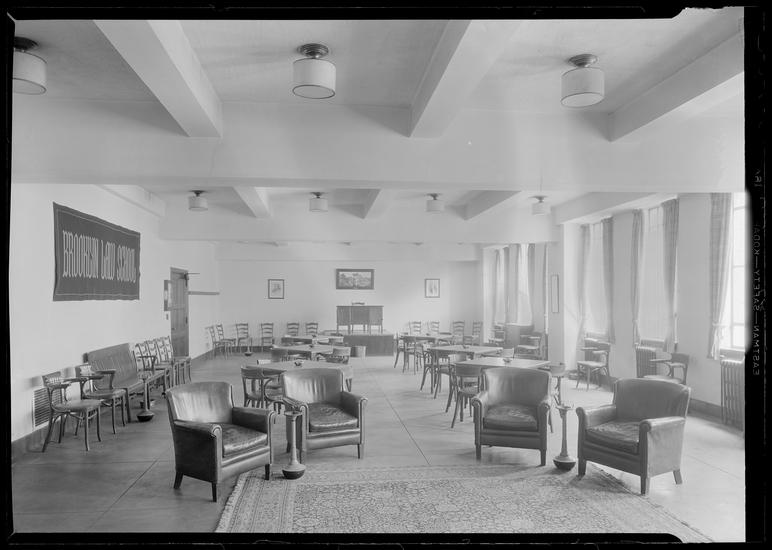 Brooklyn Law School, 375 Pearl Street, Brooklyn. Men's lounge, lamps lighted.