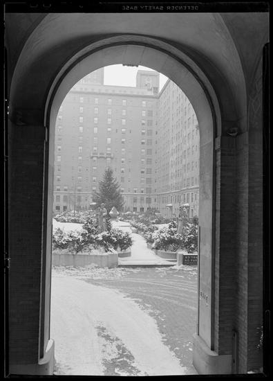 277 Park Avenue, NYC. Garden court thru entrance arch.