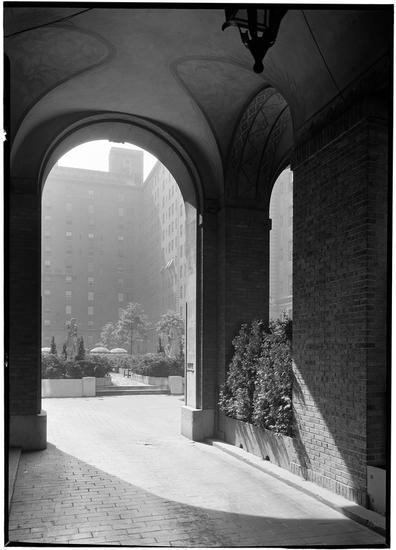 277 Park Avenue, NYC. Garden court thru entrance arch.