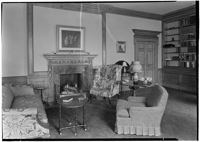 Madison H. Lewis [residence]. Living room to fireplace.