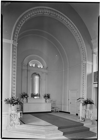 Velma B. Woolworth Memorial Church, Woodlawn Cemetery. Interior from chancel.