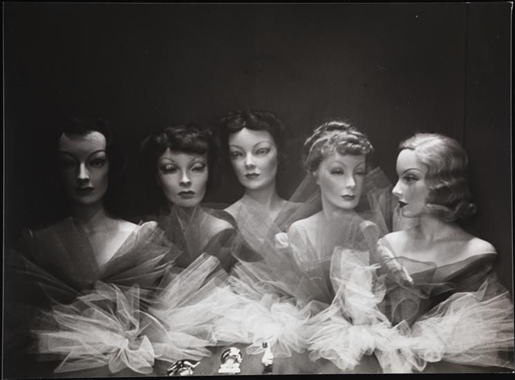 Joan Crawford, Katharine Hepburn, Myrna Loy, Greta Garbo and Marlene Dietrich in March's window, Fifth Avenue