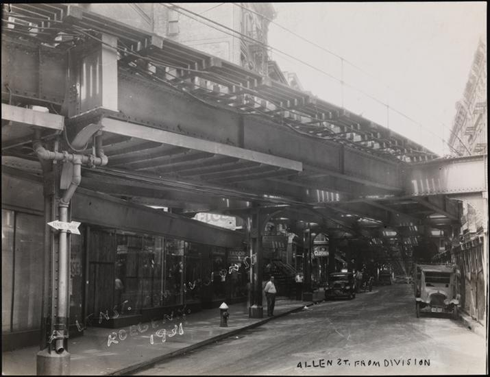 Looking Down on Rivington Street from Allen Street Elevated Station.