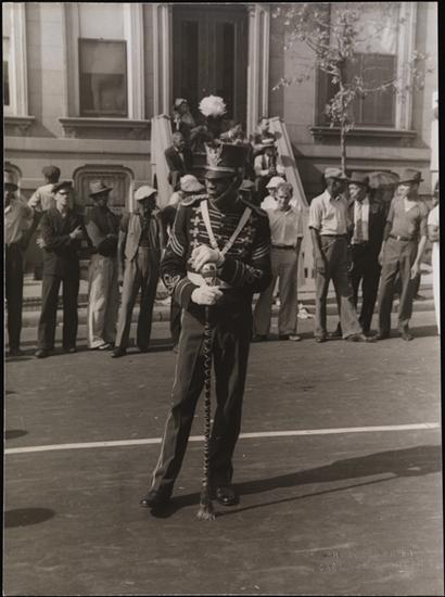 Embossed on recto: PHOTOGRAPH BY / CARL VAN VECHTEN; in ink, on verso: Negro Elks Parade, Brooklyn; stamped on verso: PHOTOGRAPH BY CARL VAN VECHTEN / CANNOT BE REPRODUCED WITHOUT PERMISSION / Date [h