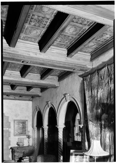 Bernard Benson [residence]. Sharp view of cloister toward entrance.