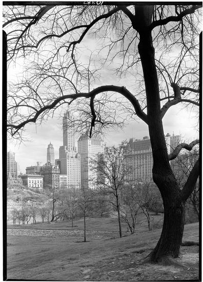 Sherry Netherland, Savoy Plaza Skyline from Central Park. From Hill at 85th Street. From Ritz to Plaza Skyline.