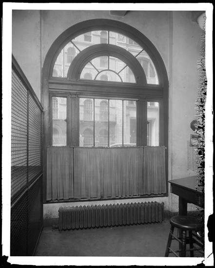 36th Street at the N.E. corner of 5th Avenue. Detail of building showing window advertising.