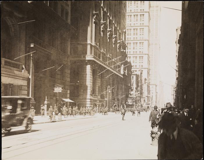 [Broadway from Trinity Churchyard looking toward Pine Street.]