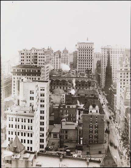 [Broadway from Trinity Churchyard looking toward Pine Street.]