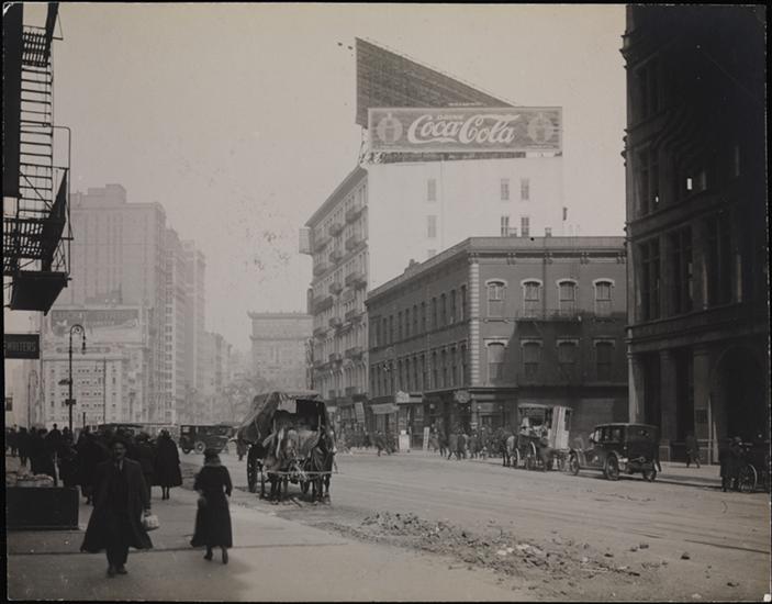 Broadway Series. View of east side of Broadway looking north from 22nd Street. The low building at the left is No. 942 The American Art Galleries. Madison Square is beyond.