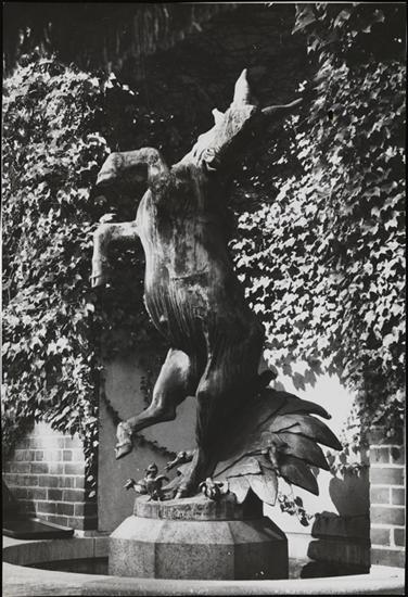 [Sculpture of an animal with cubs in the Central Park Zoo.]
