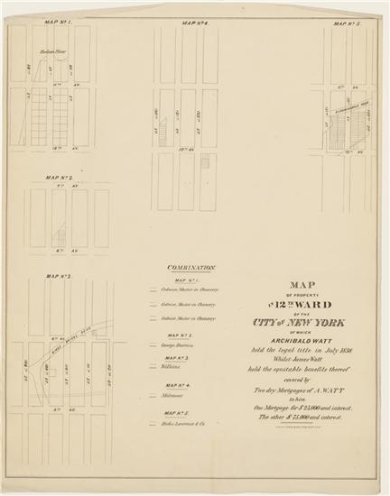 Map of Property in 12th Ward of City of New York of which Archibald Watt Held Legal Title in July 1838, Whilst James Watt held the Equitable Benefits Thereof Covered by Two Dry Mortgages of A. Watt to