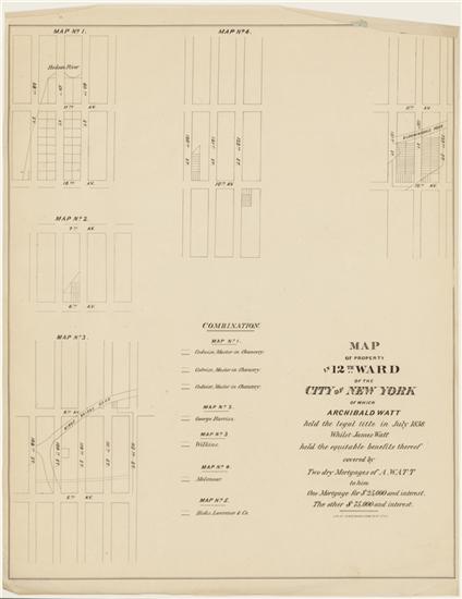 Map of Property in 12th Ward of City of New York of which Archibald Watt Held Legal Title in July 1838, Whilst James Watt held the Equitable Benefits Thereof Covered by Two Dry Mortgages of A. Watt to