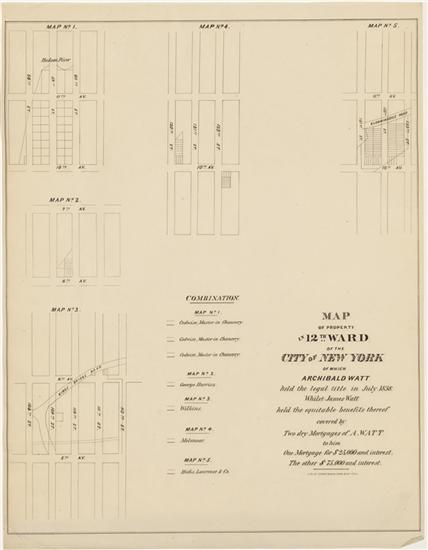 Map of Property in 12th Ward of City of New York of which Archibald Watt Held Legal Title in July 1838, Whilst James Watt held the Equitable Benefits Thereof Covered by Two Dry Mortgages of A. Watt to