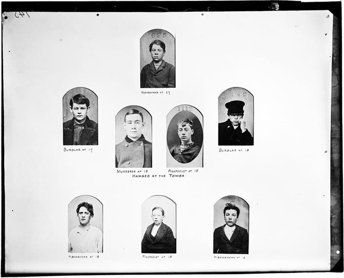 Inscription / technical details In the image: Hanged at the Tombs / Highwayman at 17 / Burglar at 17 / Murderer at 19 /  Pickpocket at 15 / Burglar at 18 / Highwayman at 19 / Pickpocket at 13 / Highwayman at 18.
