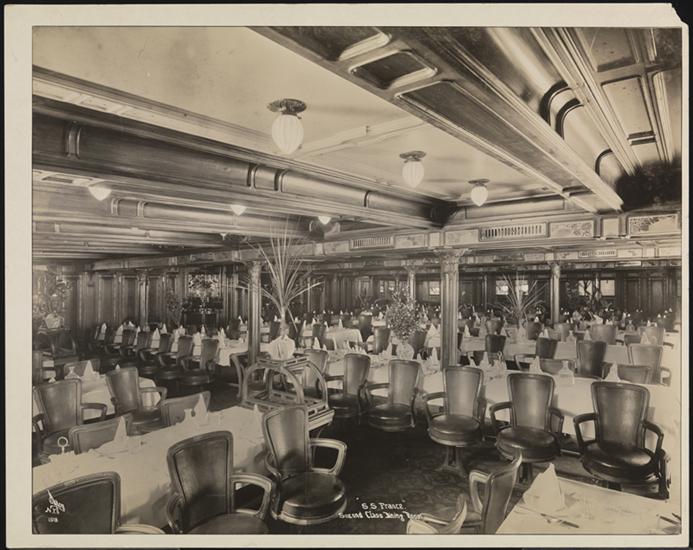French Line, S.S. "France", First Class, Interior, Grand de Luxe #61 Dining Room.