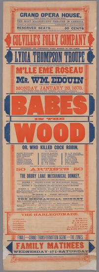 Monday, January 21, 1878, "Babes in the Wood; or, Who Killed Cock Robin?"