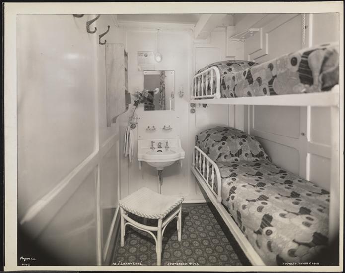 French Line, S.S. "Paris" Pier 88 N.R., Third Class, Interior, Inside 2 Berth Cabin #837.
