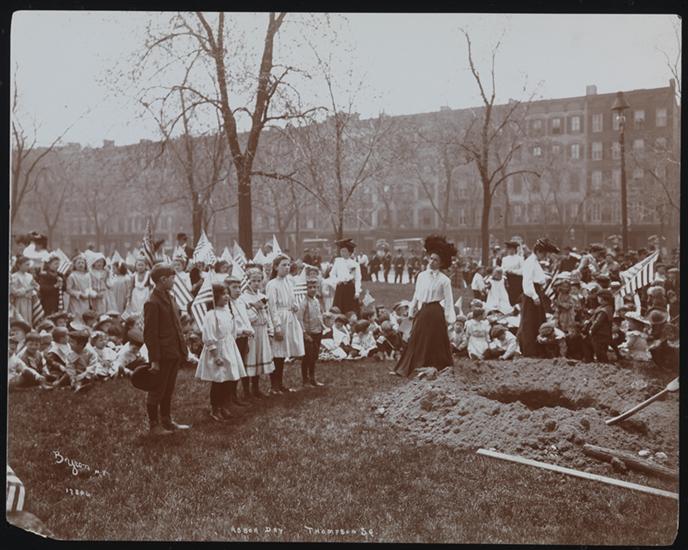 Inscription / technical details "Arbor Day, Thompson Sq." on neg--should be "Tompkins"