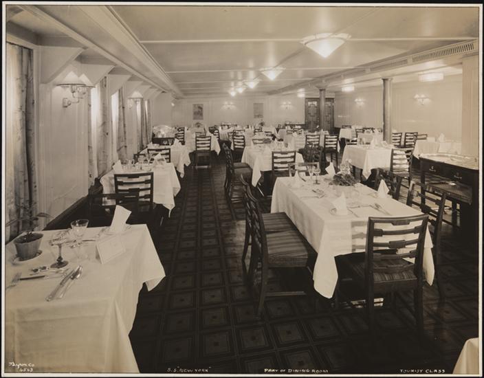 S.S. "Kosciuszko" Tourist Class, Dining Room.