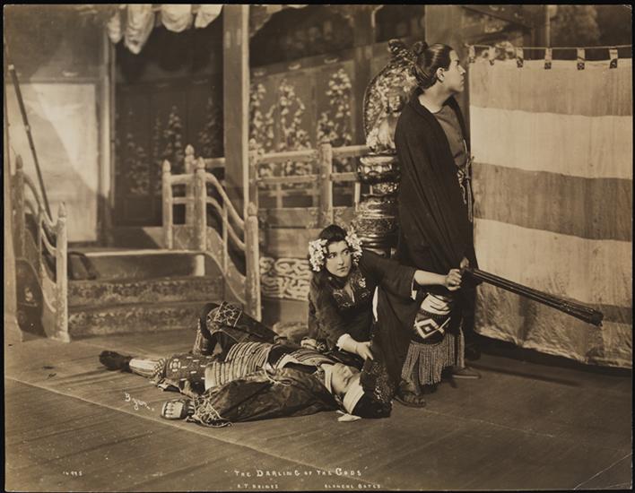 "'The Darling of the Gods'/R.T. Haines Blanche Bates" on neg.